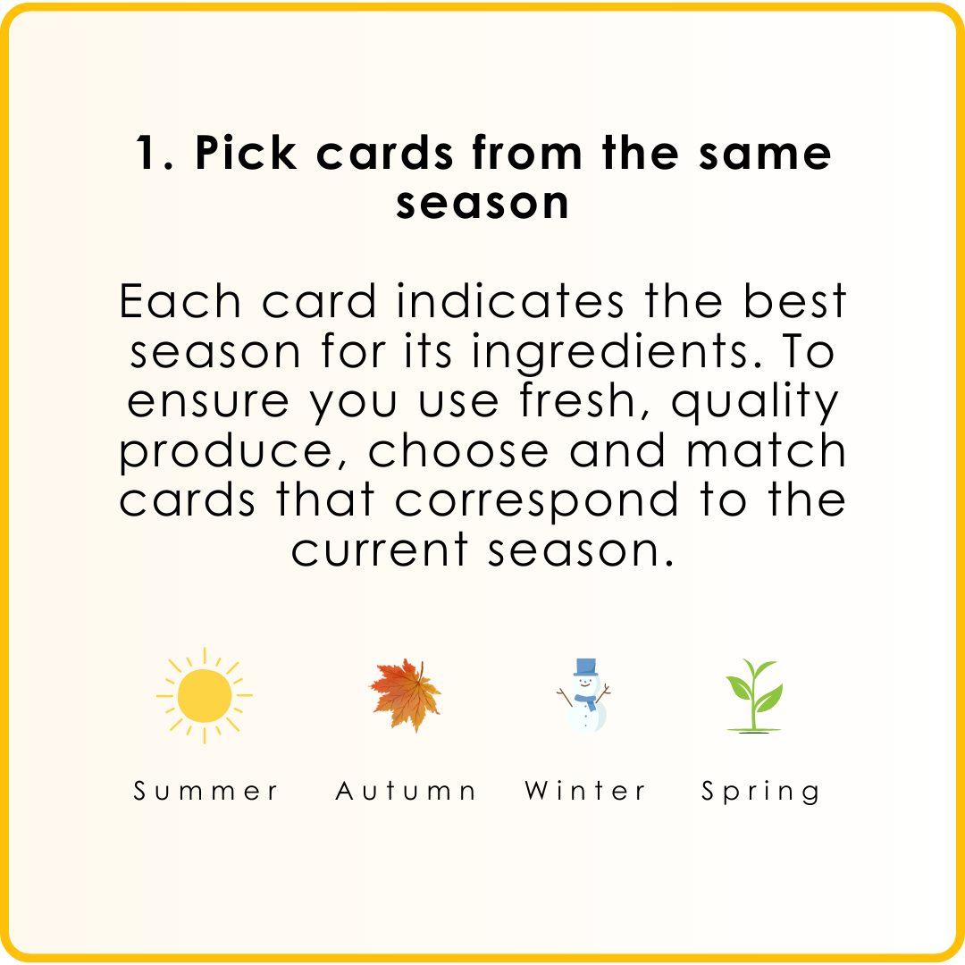 Our cards offer busy parents an easy way to simplify meal planning while ensuring toddlers enjoy healthy, balanced meals. With a variety of nutritious seasonal recipes for children aged 1+, they make mealtime fun and stress-free by involving kids in choosing dishes. Each card includes detailed instructions for preparing exciting meals that can be mixed and matched for endless variety.